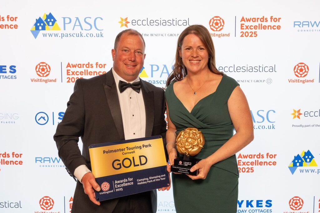 We are delighted to hear that our friends, the team at Polmanter Touring Park in St Ives have yet again won an award acknowledging their quality offering, 5 star service and facilities. The park has just been named the best in England, winning Gold in the Camping, Glamping and Holiday Park of the Year category at the 2025 Visit England Awards for Excellence.